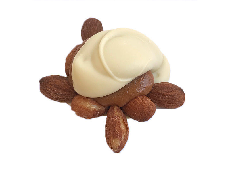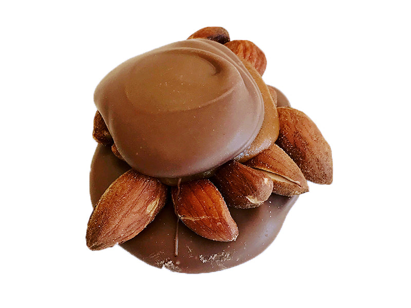 Our finest milk, dark, or white chocolate sandwiches creamy caramel, and the best roasted, salted almonds you'll encounter! Featured as Rachel Ray's snack of the day!