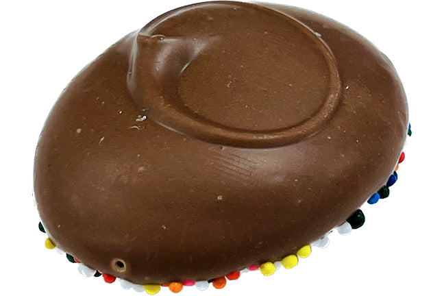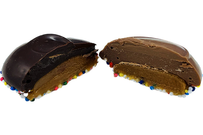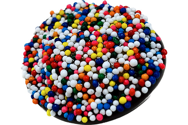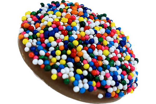 Yet another delicious Turtle Alley original! Our best soft homemade caramel, covered with chocolate on one side, and non pareils on the other. Brilliant!
