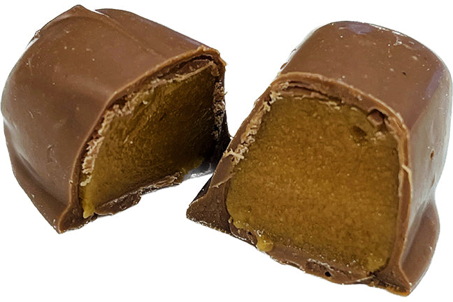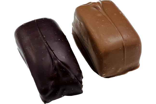 Our own rich, soft, creamy caramel generously coated with a crisp layer of not-too-sweet dark or luscious milk. Sweets-slave David B has us put the dark caramels in separate little bags, one for each day. Smart man. Heaven knows it's too hard to resist a whole box!