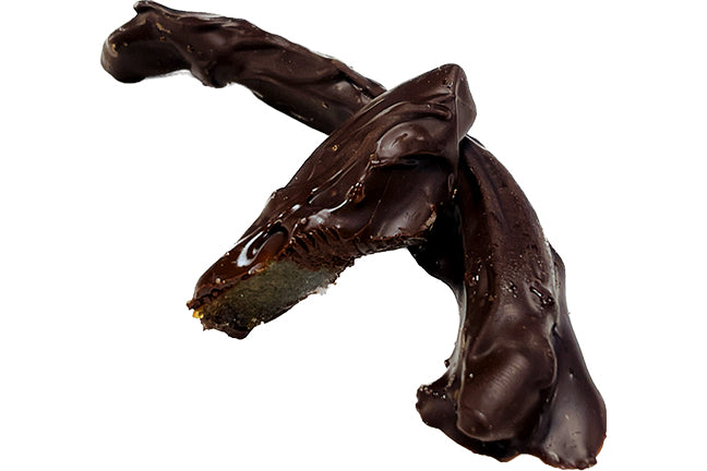 Cleanse your palate with candied strips of Spanish orange peel enhanced by a crisp coat of Hallie’s Special Dark.
