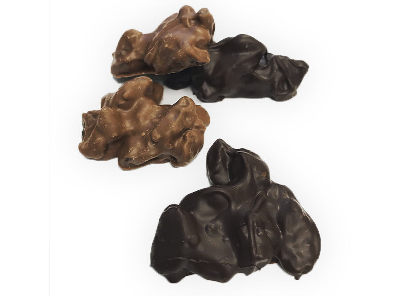 Velvet milk chocolate covers our sweetest raisins. A traditional favorite pumped up with the finest fruit and chocolate, or go with deep, dark chocolate. With antioxidants (dark chocolate) and stearic acid (raisins-they break down fatty acids in your bloodstream), it's health food, for crying out loud!